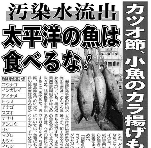 (28日日刊ゲンダイより)本当だとしたら、相当悲しい。原発の汚染水問題。福島県漁業協同組合連合会(県漁連)も28日、9月以降の福島県沖の試験操業中断を正式決定したし(→福島県漁連、漁業中断を決定 原発汚染水で :日本経済新聞)、こういう記事が一…