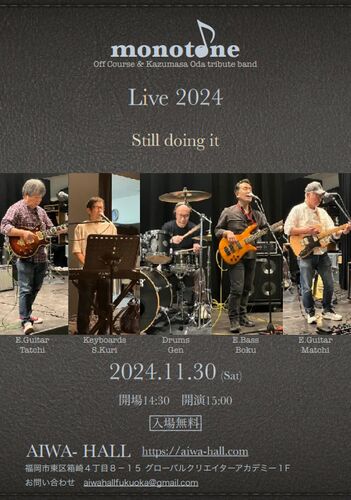 高校時代に一緒にバンドやったKくん(ボーカル)がずっとやってるバンドでコンサートするそうです。オフコースと小田さんのトリビュート。約45年ぶり?!に観に行こうと思います。1982年からずっとやってるのはすごいねー。ほんとタイトル通り”Still doing i…
